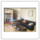 Ingresso in salone living con cucina in muratura a vista, disimpegno, camera da letto,